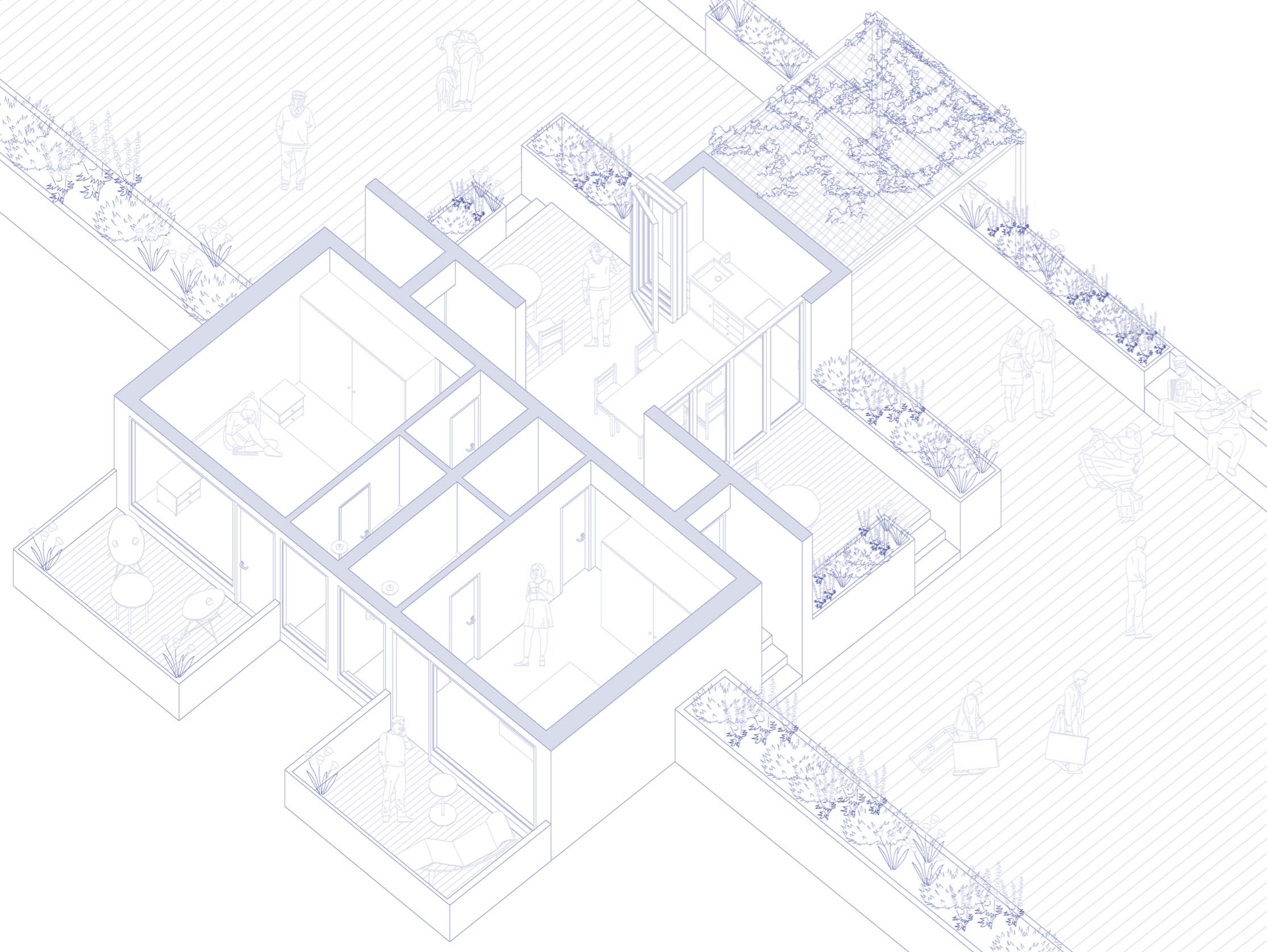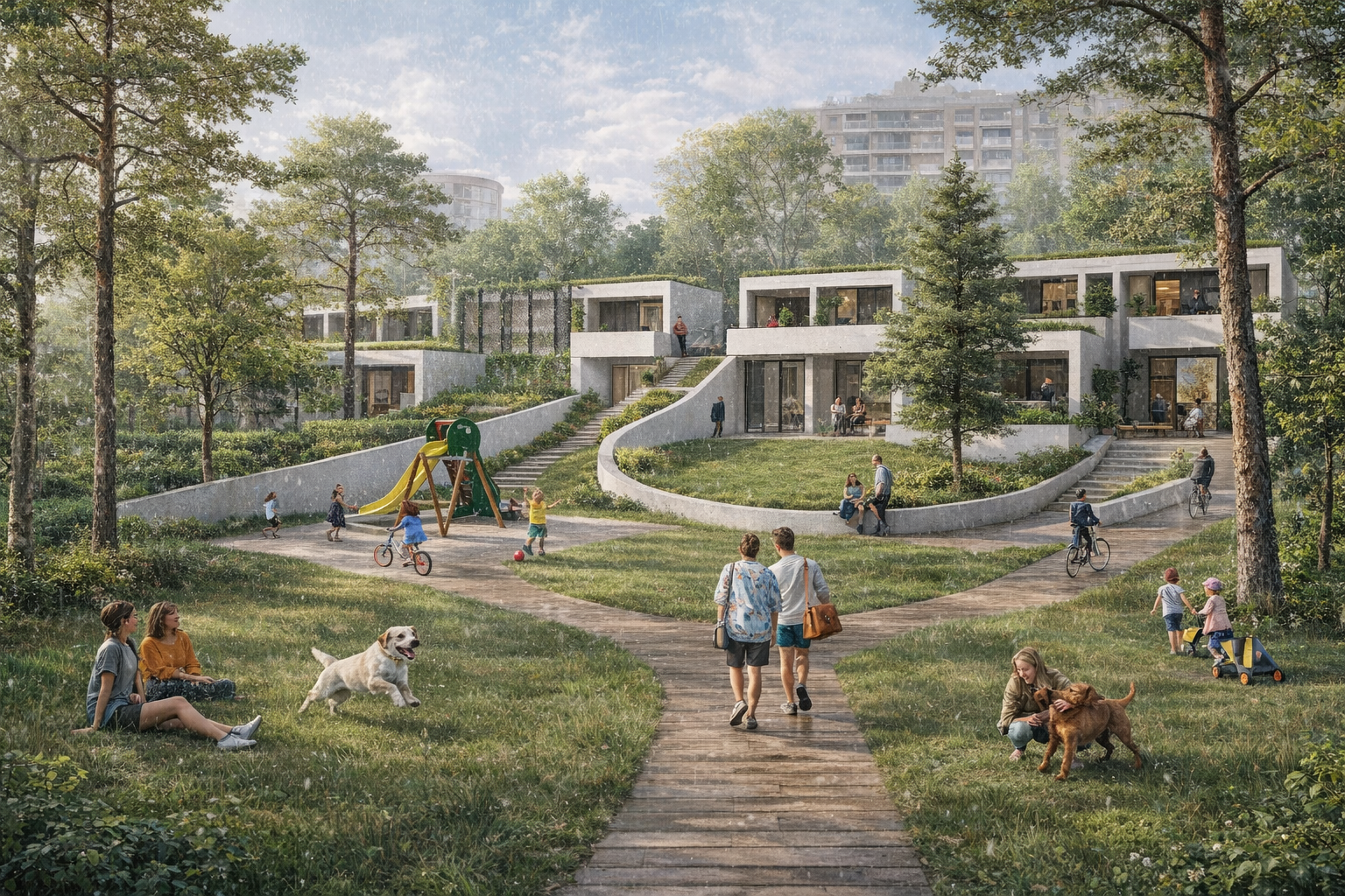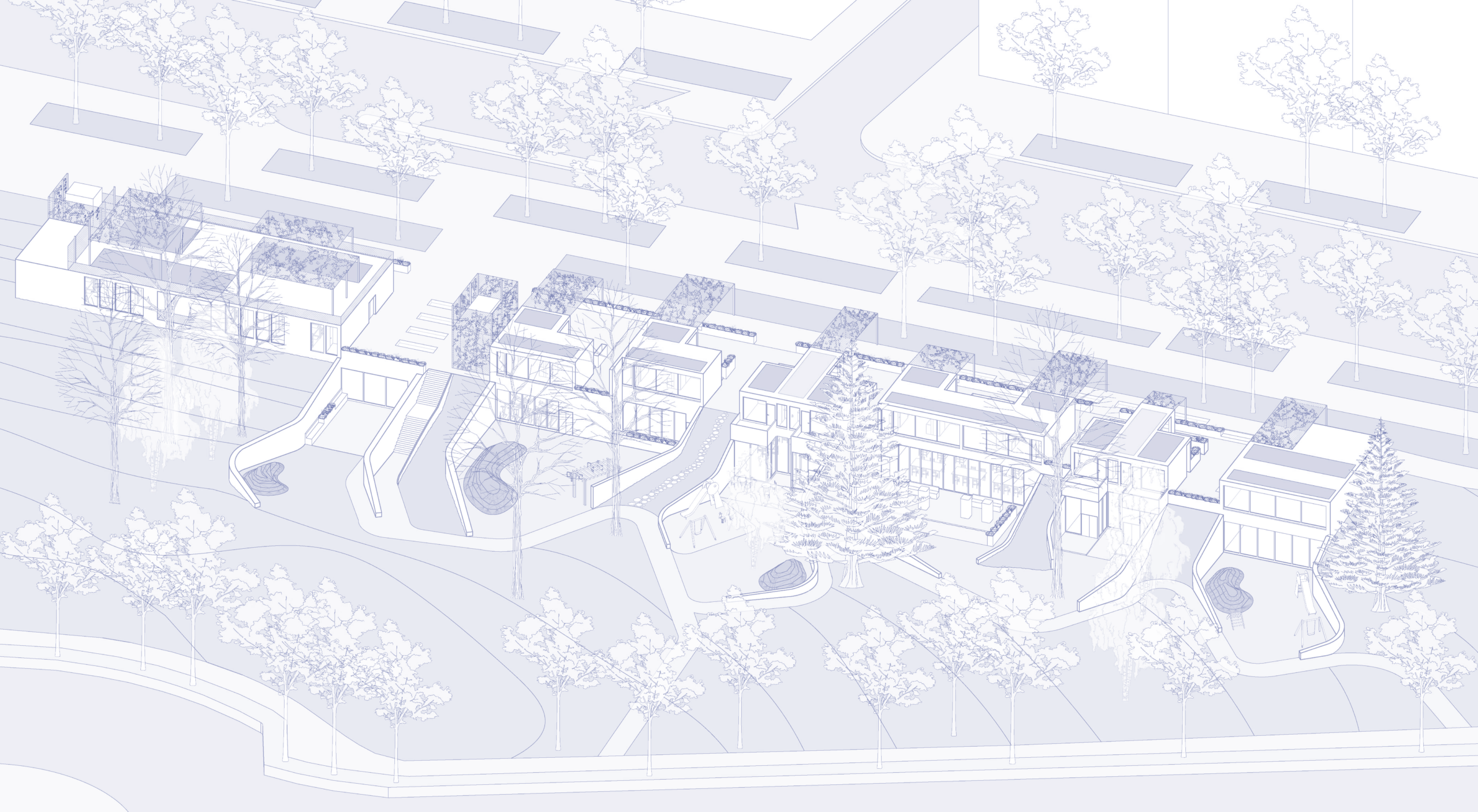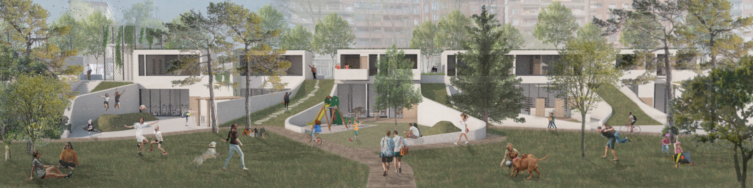 El proyecto pretende reinterpretar esa idea de “balcón” y potenciarla, generando encuadres del horizonte desde la edificación. Tomando conciencia sobre el pasado del Parque del Oeste de Madrid e intentando respetar al máximo su estado actual, se desarrolla una propuesta integradora, marcada por un estilo abierto y relajado, en permanente contacto con la naturaleza que le rodea. La arquitectura tomará parte en la elaboración del paisaje.