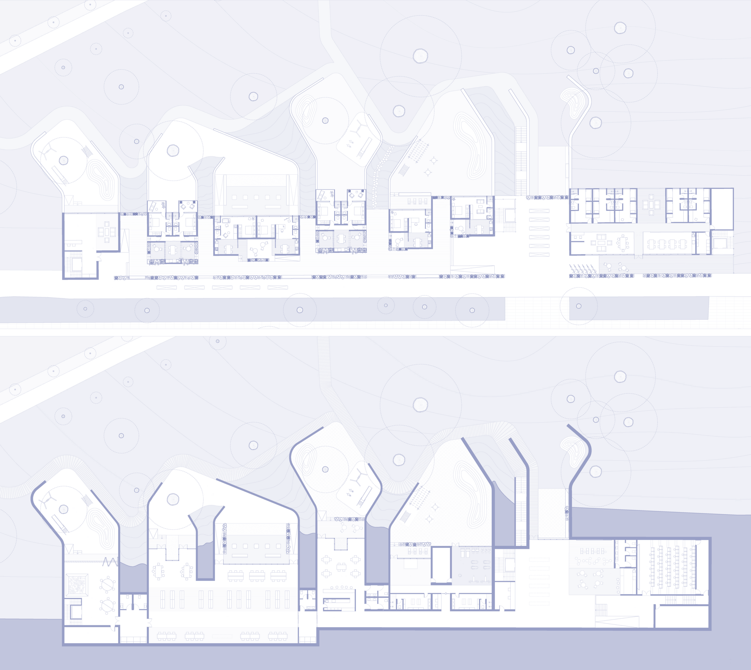 La estructura establecerá un marcado ritmo de firmes muros que a la vez esbozarán una gran fluidez en los espacios. Albergará una serie de diferentes usos que, combinados con la búsqueda de las vistas y la integración en el terreno, se organizarán en función de diferentes escalas y ambientes, atendiendo al grado de privacidad que requiera cada espacio y dotando a la edificación de una complejidad y una funcionalidad muy enriquecedoras para el conjunto. Se genera una arquitectura en la que el interés está en la esencia de lo que la define, determina y conforma, potenciando la idea de la contemplación del horizonte. La propuesta será la confirmación de la búsqueda de la mirada.
