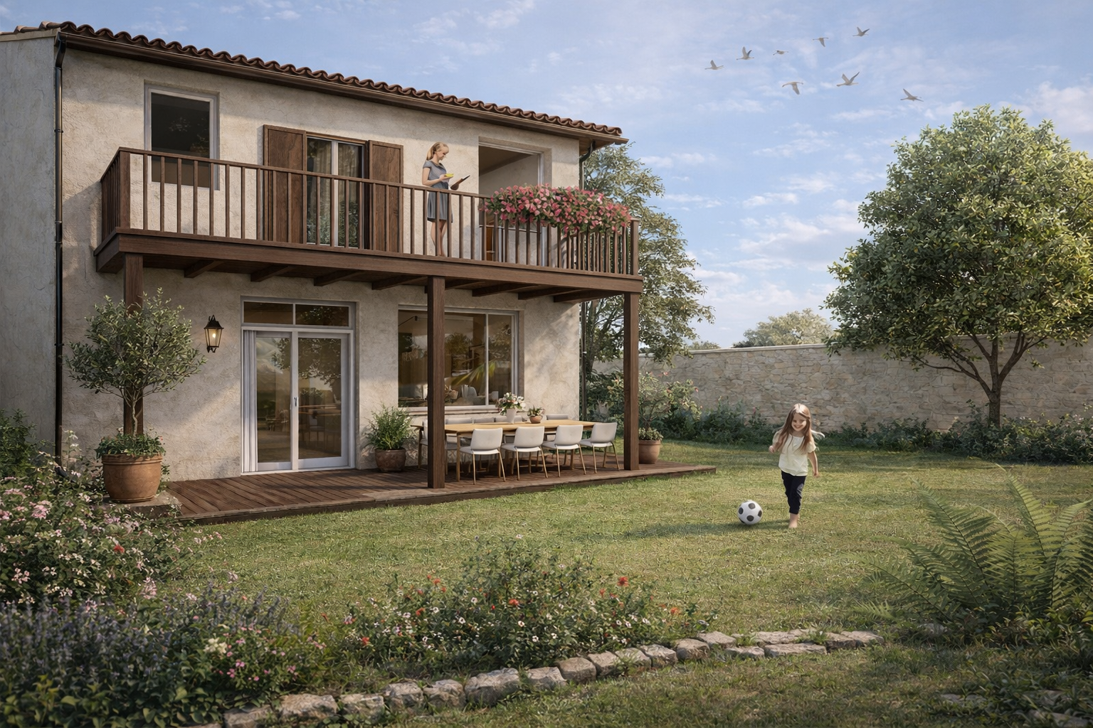 Todas las tipologías ofrecen plantas diáfanas, donde conviven todos los usos y cuyo objetivo común será la conexión del espacio interior con el exterior a través de los patios y jardines. Las cocinas, abiertas a un patio trasero o al interior, comunican los espacios. Los dormitorios tendrán acceso al patio interior o bien a su propio balcón.