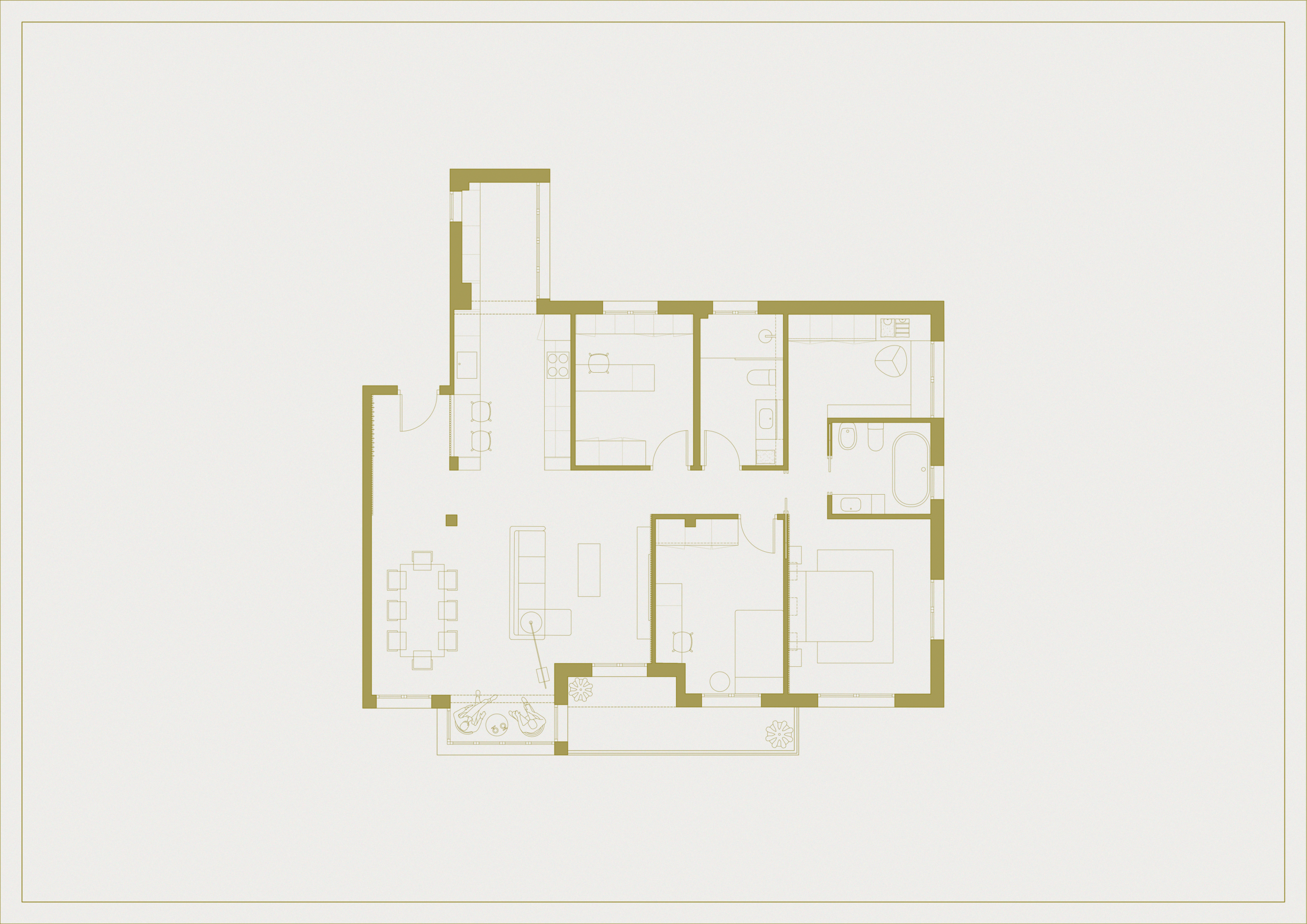 En busca de ofrecer un nuevo punto de vista al nuevo hogar del usuario, partiendo de las trazas preexistentes, se propone un diseño con una mayor fluidez de espacios y una nueva materialidad, recomponiendo y generando estancias más íntimas y relajadas.